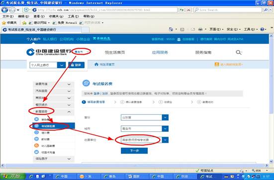 2.登錄網(wǎng)上銀行,在“悅生活”→“應(yīng)用服務(wù)”→“教育服務(wù)”→“考試報(bào)名費(fèi)”“項(xiàng)目下完成繳費(fèi)