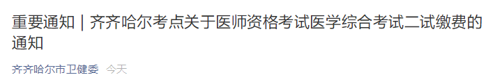黑龍江齊齊哈爾2021年醫(yī)師資格考試綜合筆試二試網(wǎng)上繳費(fèi)的通知