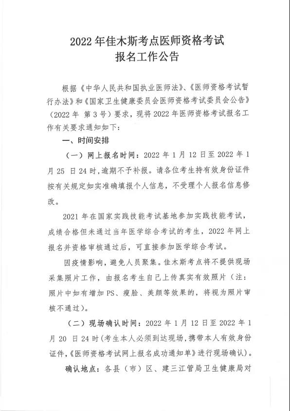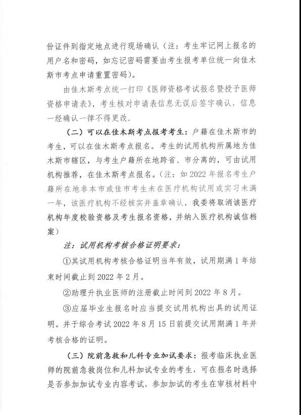 2022年國家醫(yī)師資格考試佳木斯考點報名審核工作的通知