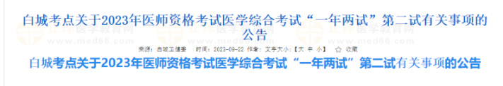 白城考點關于2023年醫(yī)師資格考試醫(yī)學綜合考試“一年兩試”第二試有關事項的公告