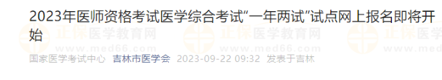 根據(jù)醫(yī)師資格考試工作安排,2023年醫(yī)師資格考試醫(yī)學(xué)綜合考試“一年兩試”試點(diǎn)網(wǎng)上報(bào)名將于9月22日開(kāi)始,現(xiàn)將有關(guān)事項(xiàng)通知如下:
