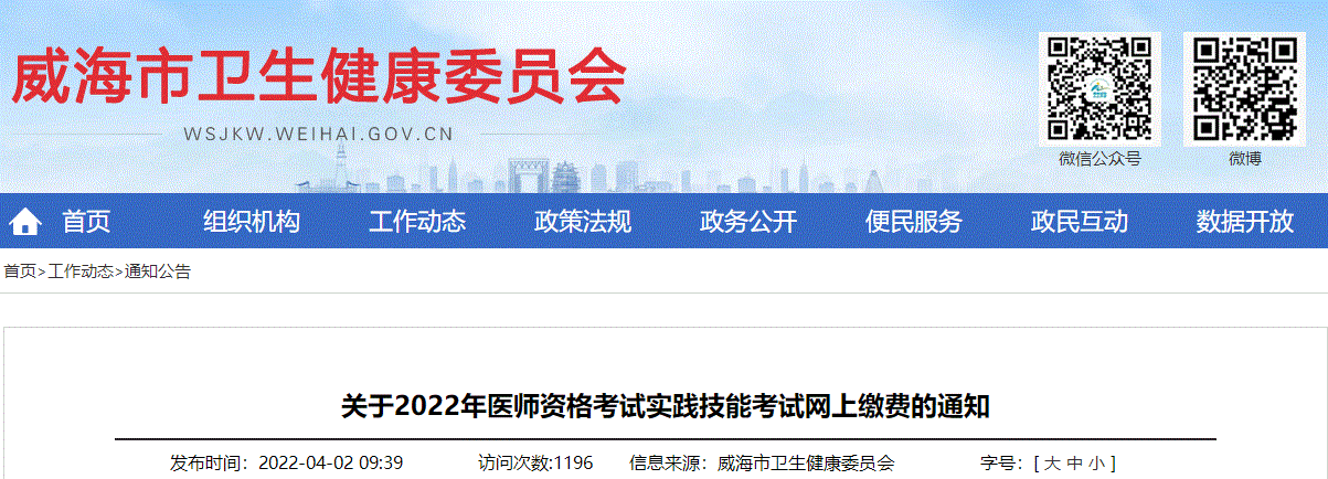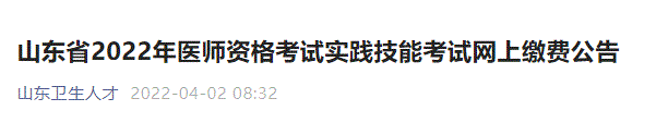 2022年威海市醫(yī)師資格考試實踐技能考試網(wǎng)上繳費工作將于4月5日-14日開展