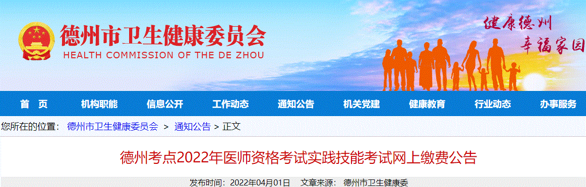 德州考點(diǎn)2022年醫(yī)師資格考試實(shí)踐技能考試網(wǎng)上繳費(fèi)公告