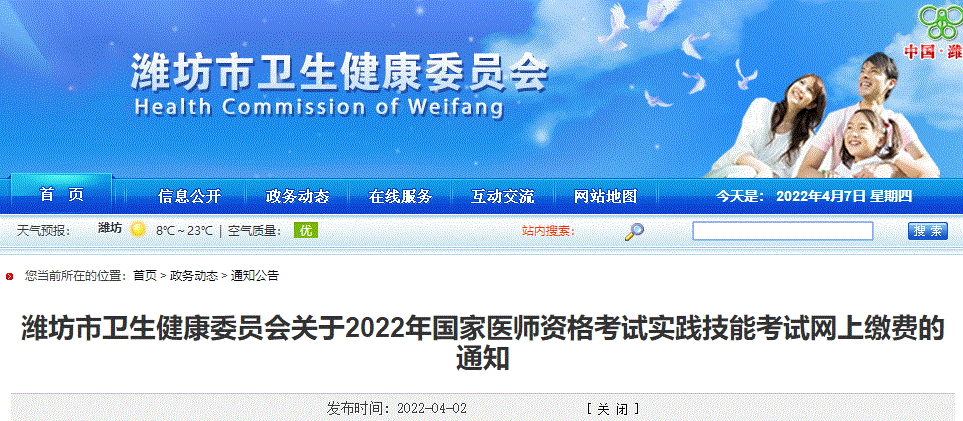 關(guān)于濟(jì)寧考點(diǎn)2022年醫(yī)師資格考試實(shí)踐技能考試網(wǎng)上繳費(fèi)工作的通知