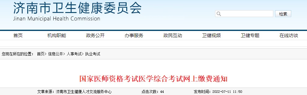 濟(jì)南考點(diǎn)2022年國(guó)家醫(yī)師資格考試醫(yī)學(xué)綜合考試網(wǎng)上繳費(fèi)的通知