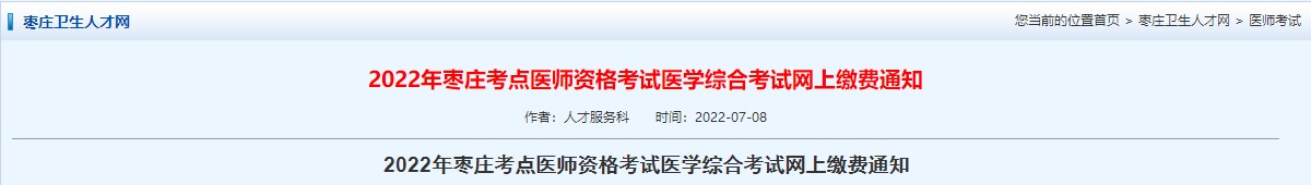 2022年棗莊考點(diǎn)醫(yī)師資格考試醫(yī)學(xué)綜合考試網(wǎng)上繳費(fèi)通知