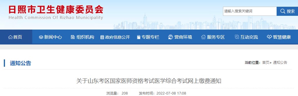 關(guān)于山東考區(qū)國家醫(yī)師資格考試日照考點醫(yī)學(xué)綜合考試網(wǎng)上繳費(fèi)通知