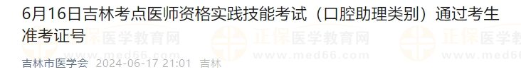 6月16日吉林考點(diǎn)醫(yī)師資格實(shí)踐技能考試(口腔助理類別)通過考生準(zhǔn)考證號(hào)