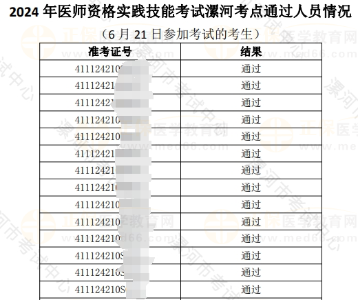 2024年醫(yī)師資格實(shí)踐技能考試漯河考點(diǎn)通過人員情況 (6月21日考試考生)