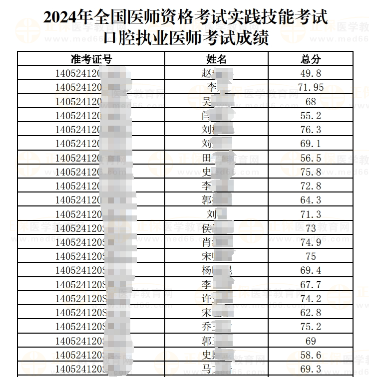 2024年山西運(yùn)城醫(yī)師資格考試實(shí)踐技能考試口腔執(zhí)業(yè)醫(yī)師考試成績(jī)