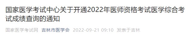 吉林市開(kāi)通2022年醫(yī)師資格考試醫(yī)學(xué)綜合考試成績(jī)查詢