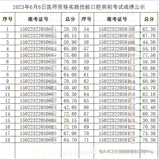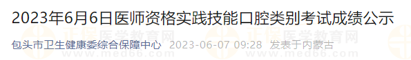 內(nèi)蒙古包頭2023年6月6日醫(yī)師資格實踐技能口腔類別考試成績公示