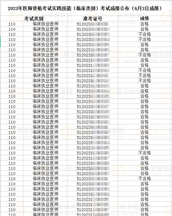 6月5日吉林白城考點(diǎn)2023醫(yī)師資格實(shí)踐技能考試成績(jī)公示