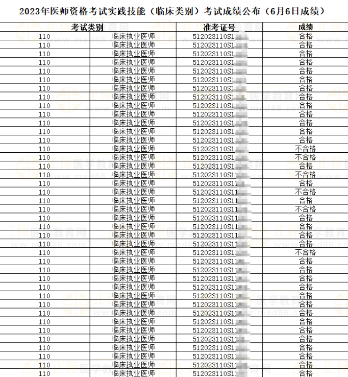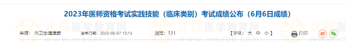 原文通知標(biāo)題:2023年醫(yī)師資格考試實(shí)踐技能(臨床類別)考試成績公布(6月6日成績)