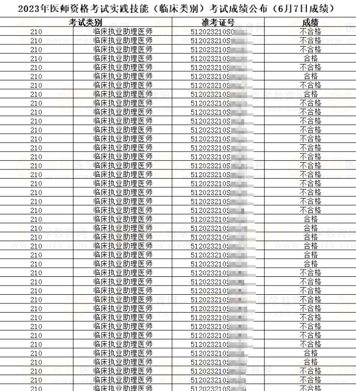 原文通知標(biāo)題:2023年醫(yī)師資格考試實(shí)踐技能(臨床類別)考試成績(jī)公布(6月7日成績(jī))