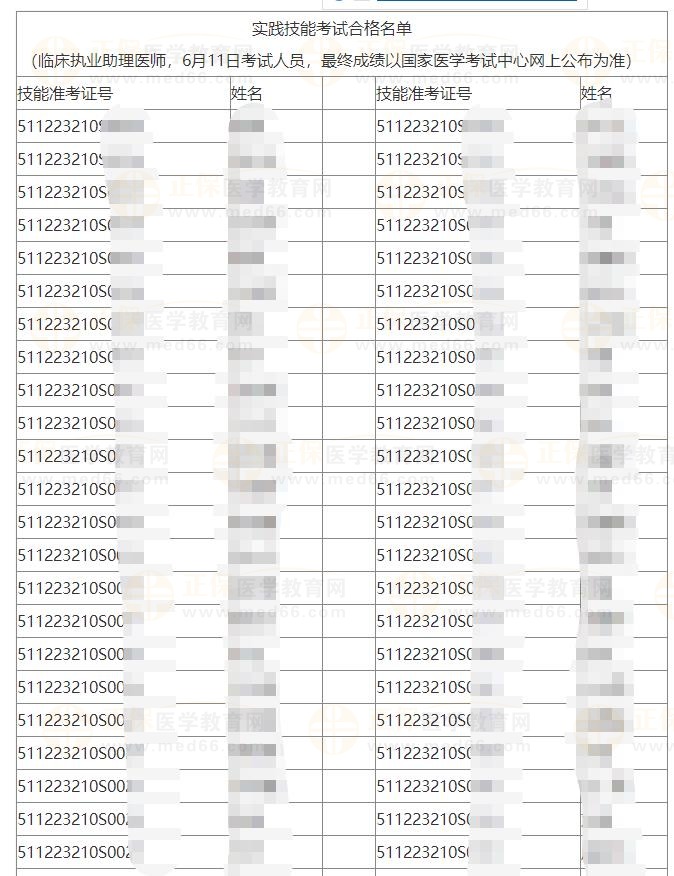 2023年6月11日四川瀘州考點(diǎn)醫(yī)師資格實(shí)踐技能考試合格名單(臨床助理類別)