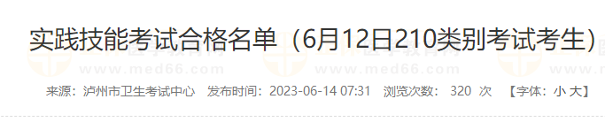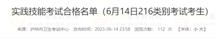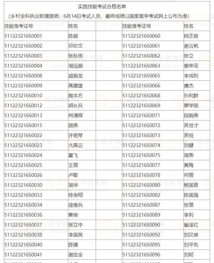 2023年四川瀘州考點醫(yī)師資格實踐技能考試6月14日合格名單(鄉(xiāng)村全科類別)