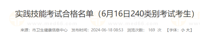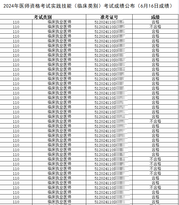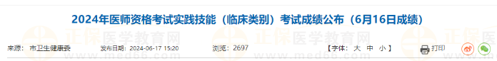 四川雅安市2024年醫(yī)師資格考試實(shí)踐技能(臨床類別)考試成績(jī)公布(6月16日)