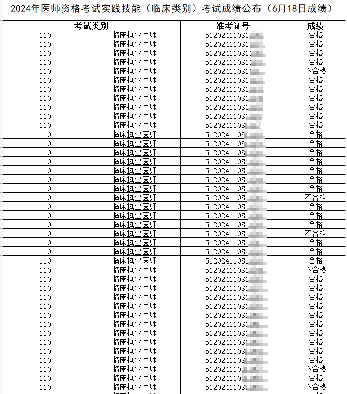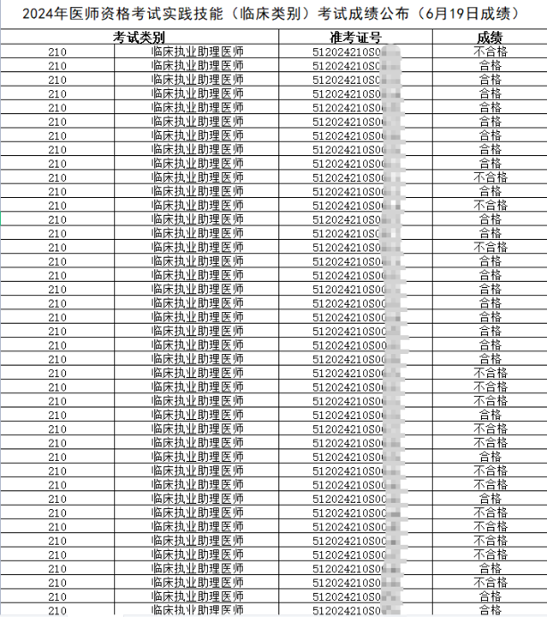 四川雅安市2024年醫(yī)師資格考試實(shí)踐技能(臨床類別)考試成績(jī)公布(6月18日)