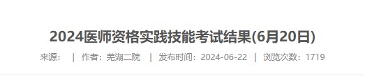 6月20日安徽蕪湖第二人民醫(yī)院2024醫(yī)師資格實(shí)踐技能考試結(jié)果