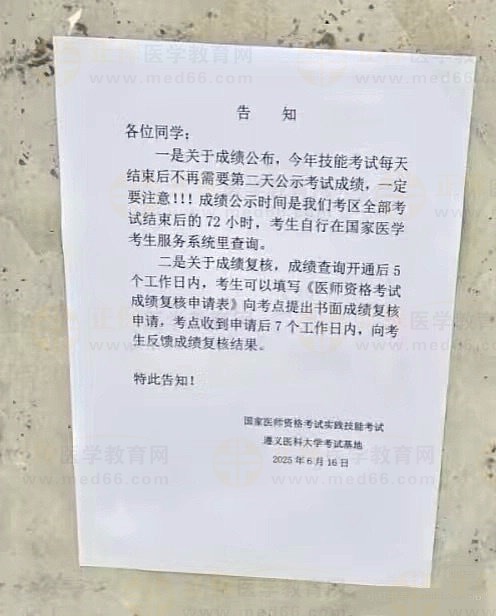 貴州省2025年醫(yī)師資格實踐技能考試成績公布時間已確定!根據(jù)貴州省遵義醫(yī)科大學考試基地官方公示: