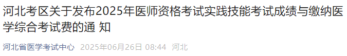官方速報(bào)!河北省2025年醫(yī)師資格實(shí)踐技能考試成績(jī)6月26日公布!