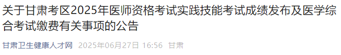 官方速報!甘肅省2025年醫(yī)師資格實踐技能考試成績6月28日公布!