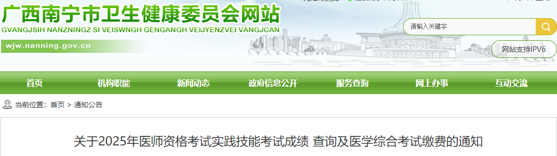 廣西考區(qū)2025年醫(yī)師資格考試實(shí)踐技能考試成績已發(fā)布,現(xiàn)就實(shí)踐技能考試成績查詢和醫(yī)學(xué)綜合考試網(wǎng)上繳費(fèi)事宜通知如下:
