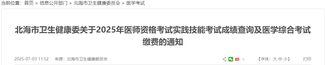 廣西北海2025年醫(yī)師資格實踐技能成績查詢&筆試繳費已開始!以下為考點發(fā)布的官方通知要求,請相關考生及時查看,按時完成筆試繳費!