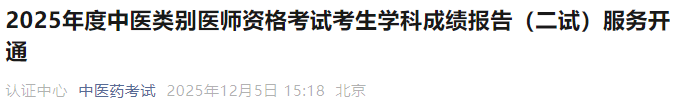 2025年中醫(yī)類別醫(yī)師資格考試(二試)學(xué)科成績(jī)報(bào)告服務(wù)開(kāi)通!
