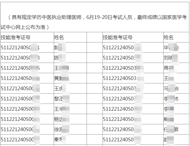四川瀘州2021年醫(yī)師資格實(shí)踐技能考試合格名單(19-20日240類(lèi)別考試考生)