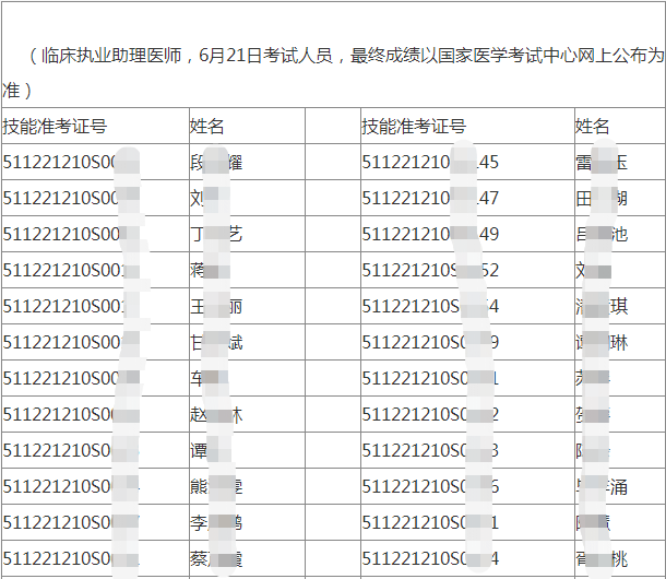 四川瀘州2021年醫(yī)師資格實(shí)踐技能考試合格名單(21日210類別考試考生)