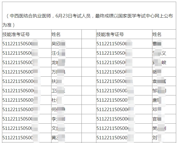 四川瀘州2021年中西醫(yī)執(zhí)業(yè)醫(yī)師實(shí)踐技能考試合格名單(23日150類別考試考生)