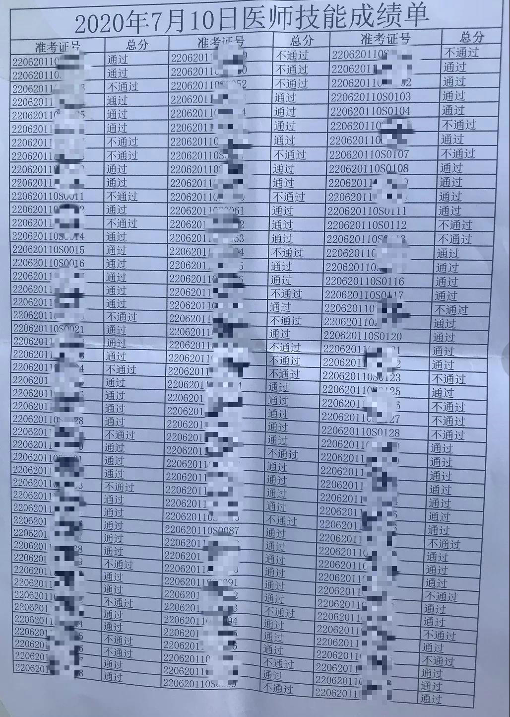 2020年白城、松原考點(diǎn)醫(yī)師資格臨床類別實(shí)踐技能成績(jī)單公布(7月10日)!
