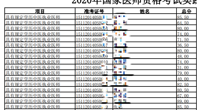 2020內(nèi)蒙古考區(qū)醫(yī)師資格實(shí)踐技能考試成績(jī)名單匯總