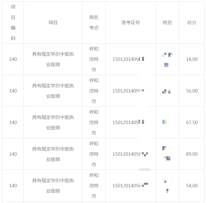 呼和浩特考點2020年中醫(yī)類別醫(yī)師資格實踐技能考試成績公示(7月11—16日)