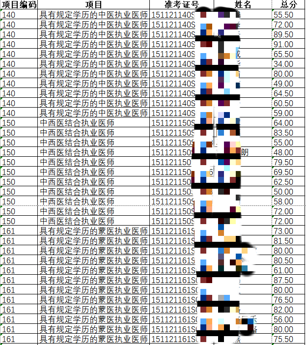 錫林郭勒盟考點2021年國家醫(yī)師資格考試實踐技能考試成績(總)