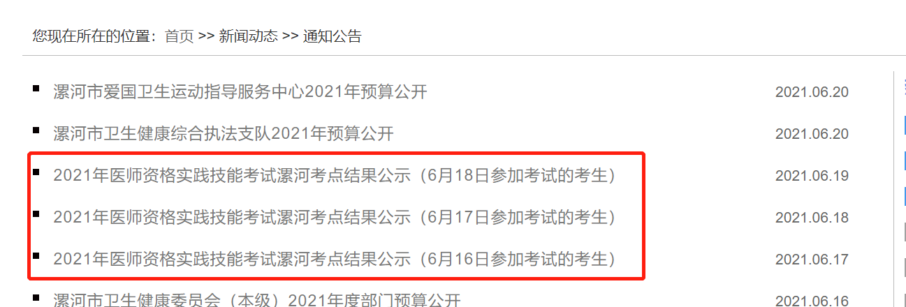 漯河考點(diǎn)2021年醫(yī)師資格實(shí)踐技能考試成績(jī)公示(6月16-27日)