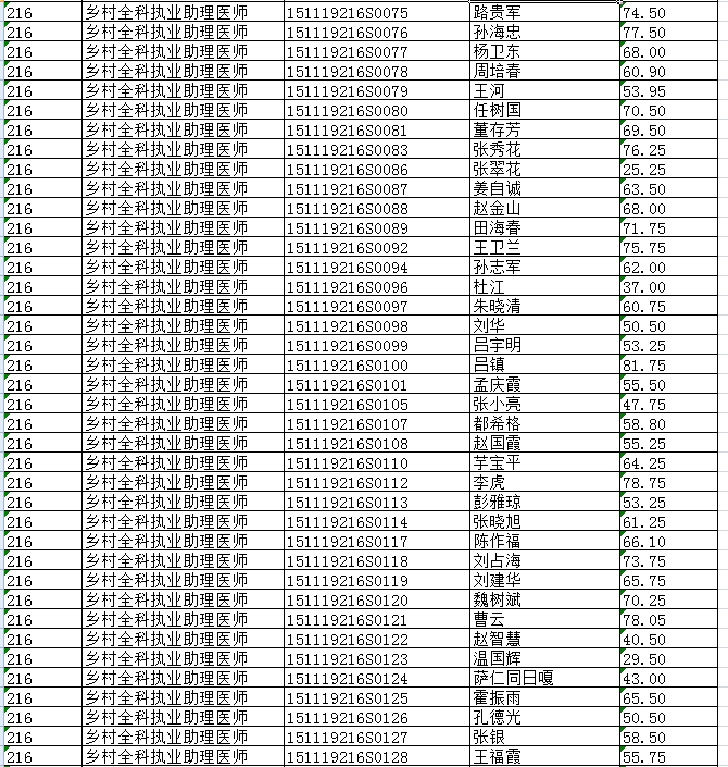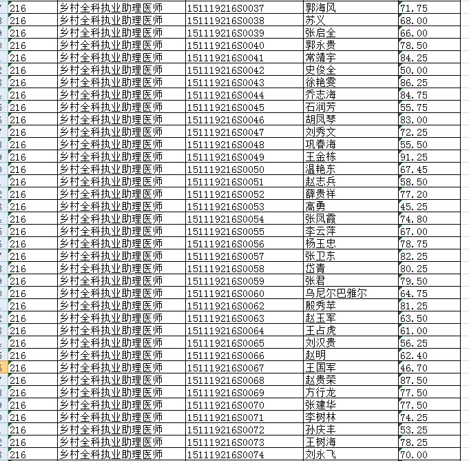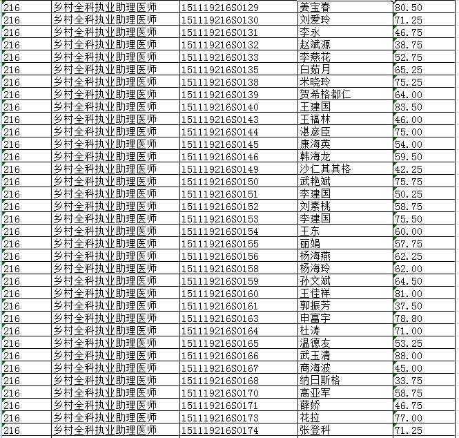 2019年國(guó)家鄉(xiāng)村執(zhí)業(yè)助理(錫盟考點(diǎn))考生成績(jī)表(點(diǎn)擊下載)