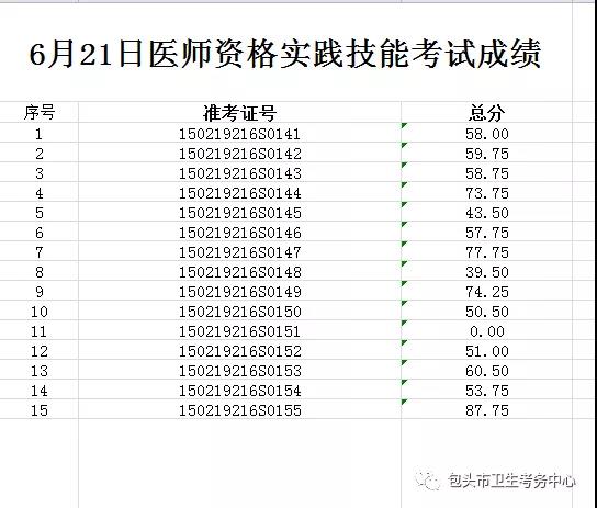 關(guān)于“包頭考點2019年6月21日醫(yī)師資格實踐技能成績公布!”,相信很多考生十分關(guān)注,醫(yī)學(xué)教育網(wǎng)編輯將官方發(fā)布的成績單整理分享如下~