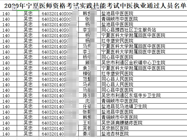 吳忠考點(diǎn)2020年中醫(yī)執(zhí)業(yè)醫(yī)師資格技能考試哪些考生已通過(guò)?