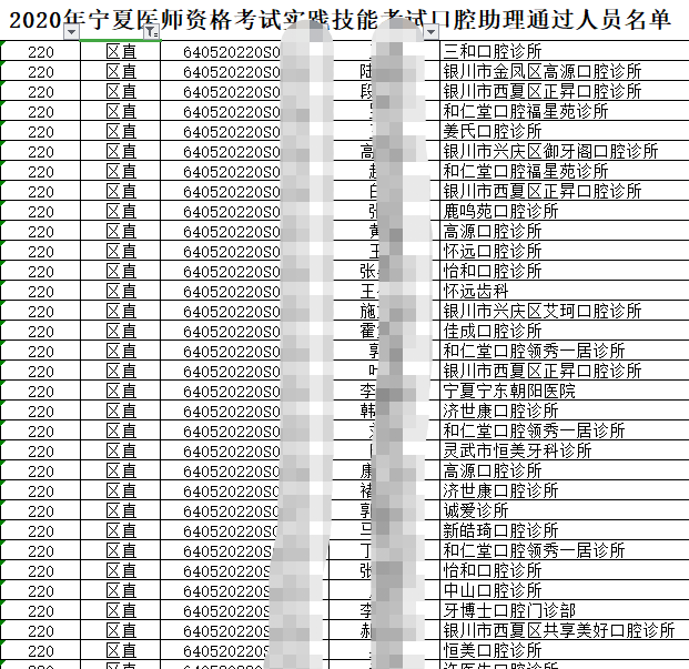 寧夏區(qū)直口腔助理醫(yī)師資格實踐技能考試合格名單2020年