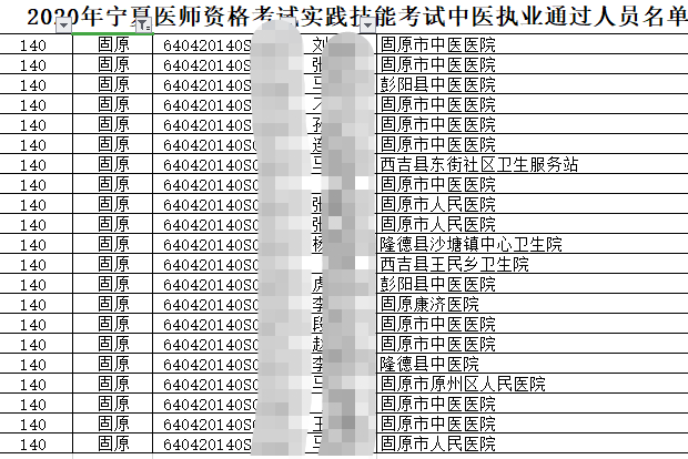 寧夏固原2020年中醫(yī)執(zhí)業(yè)醫(yī)師實(shí)踐技能考試合格人員準(zhǔn)考證號(hào)