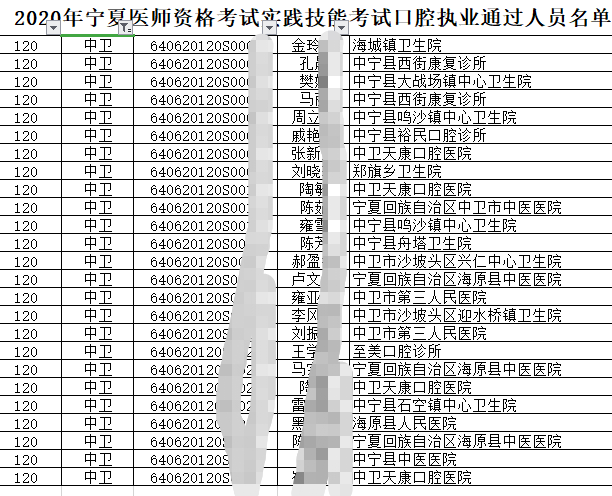 口腔執(zhí)業(yè)醫(yī)師實(shí)踐技能考試寧夏考區(qū)中衛(wèi)考點(diǎn)2020年哪些人合格了