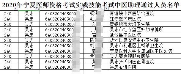 吳忠考點(diǎn)中醫(yī)執(zhí)業(yè)助理醫(yī)師資格實(shí)踐技能考試合格人員2020年