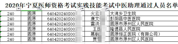 固原考點2020年中醫(yī)助理醫(yī)師資格技能考試通過人員名單