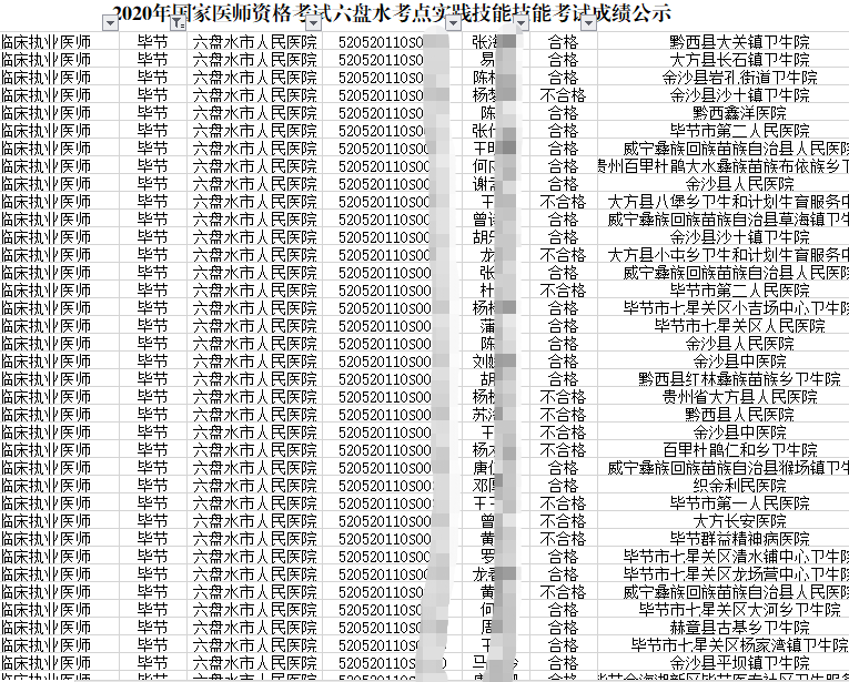 2020年國家醫(yī)師資格考試六盤水考點(diǎn)實(shí)踐技能技能考試成績.xls