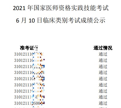 上海2021年國家醫(yī)師資格實(shí)踐技能考試成績公示(6月10日考試批次)