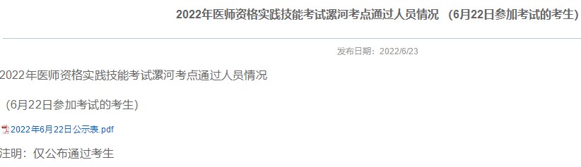 2022年醫(yī)師資格實(shí)踐技能考試漯河考點(diǎn)通過(guò)人員情況 (6月22日參加考試的考生):