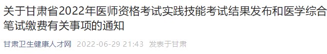 甘肅考區(qū)2022年國家醫(yī)師資格實(shí)踐技能考試結(jié)果已于6月29日上午9:00發(fā)布。醫(yī)學(xué)綜合筆試網(wǎng)上繳費(fèi)窗口將于6月30日開放,7月8日24:00準(zhǔn)時(shí)結(jié)束。